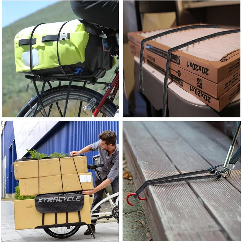 2.Rust-Resistant Durability: The outdoor elastic bungee straps are designed with superior anti-rust and wear-resistant properties, featuring rounded ends to protect hands and items from scratches.