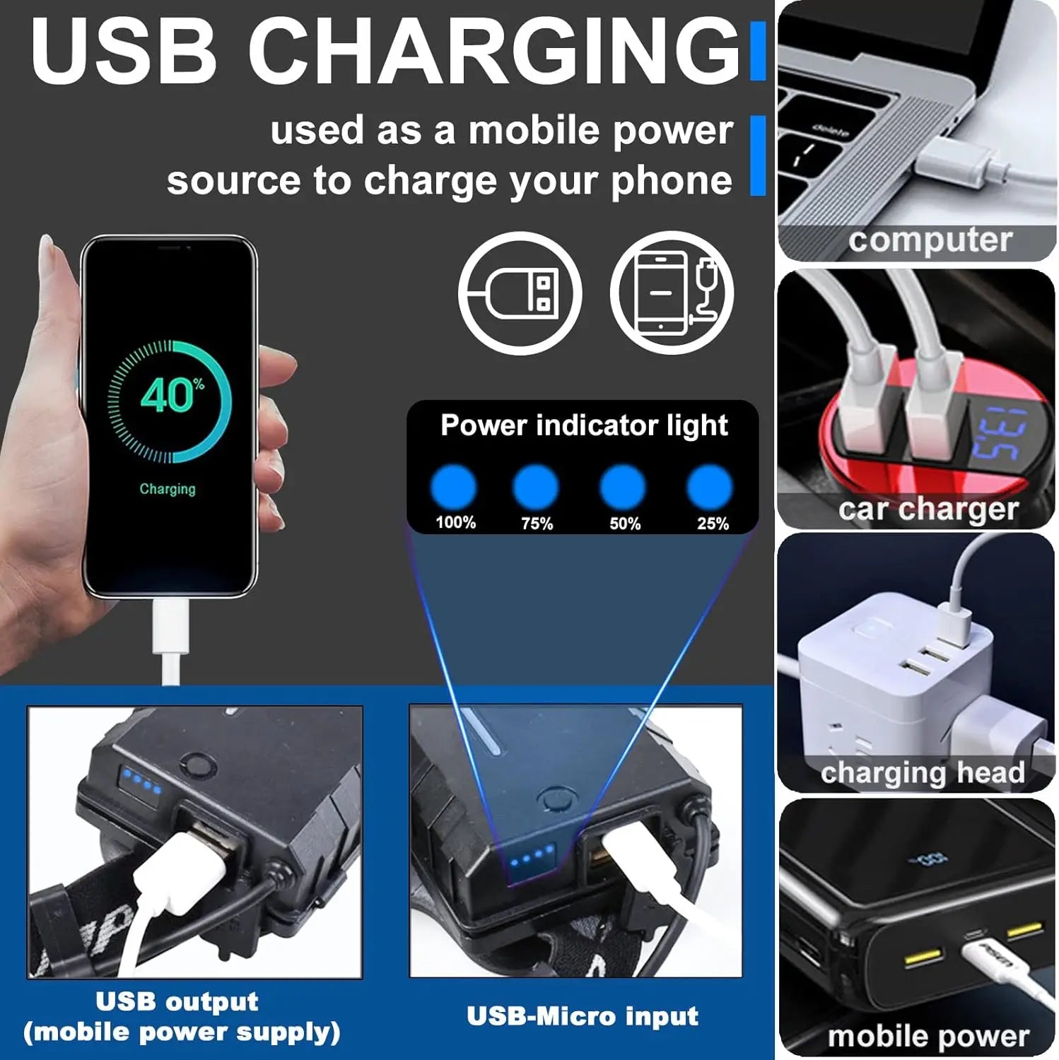 2pcs P70 Telescopic Zoom Glare Headlight USB Rechargeable Night Fishing Light Head-Mounted Torch High-Power LED Headlight