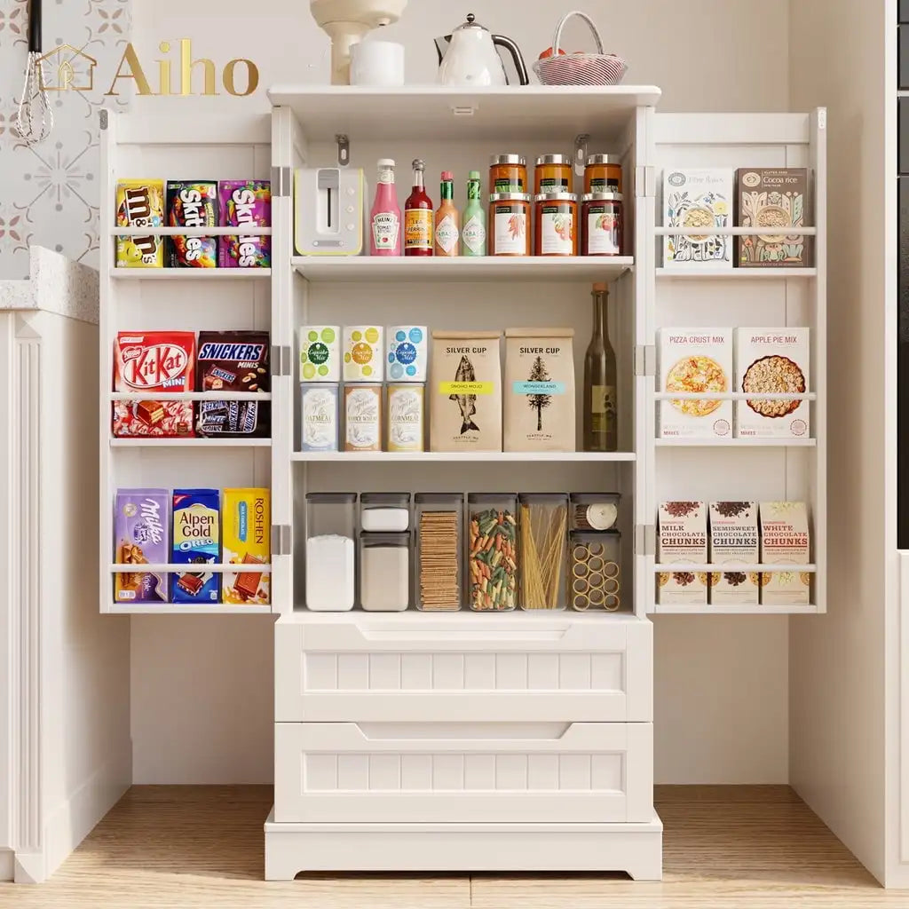 - 🗄️【STORAGE SPACE】- The pantry cabinet combines 2 doors, 2 drawers, and 6 shelves, providing ample storage space for your tableware, clothes, and books