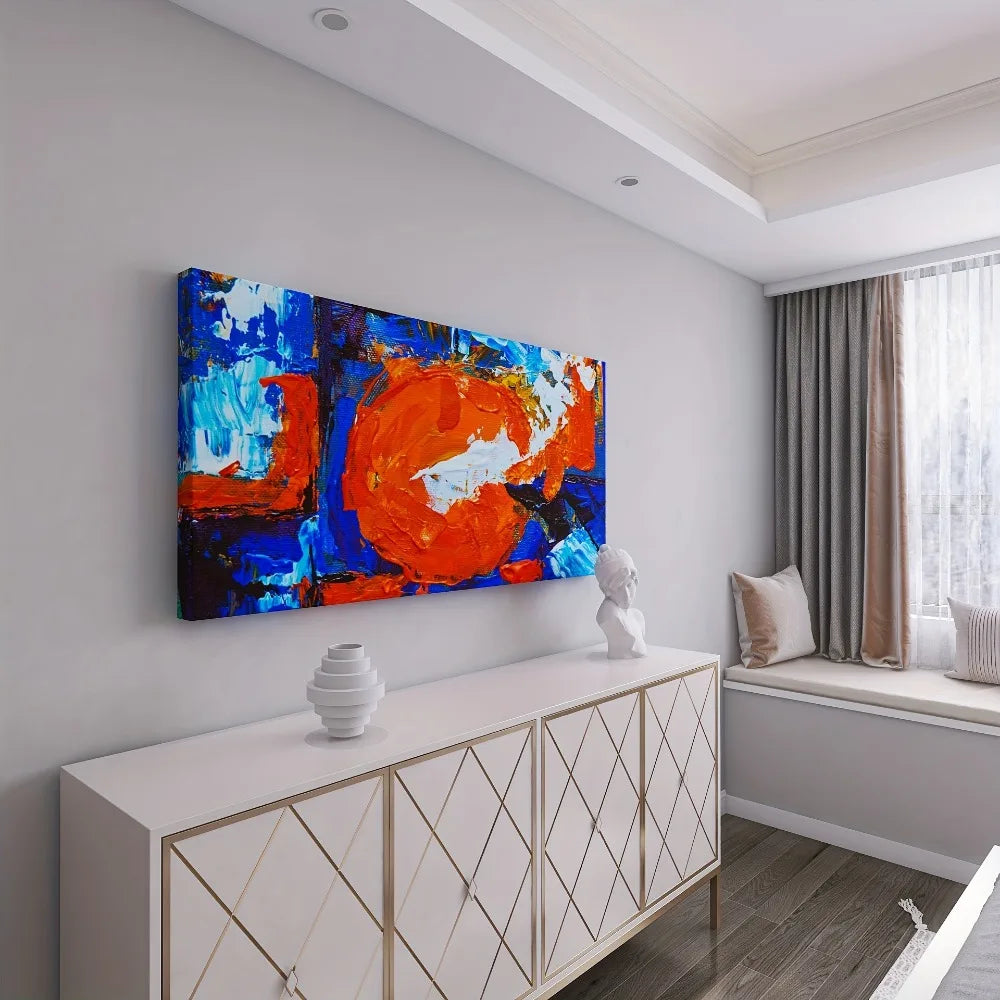 Abstract sun pattern canvas print with 1.5 inch thick pine frame interior vintage classic art trim