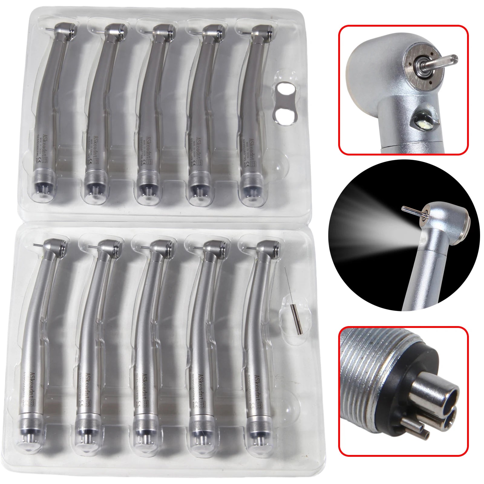 ASK Dental LED E-generator/No LED High Speed Handpiece 4Hole Low Noise Torque Head Push button Triple /Single Water Spray Stainl
