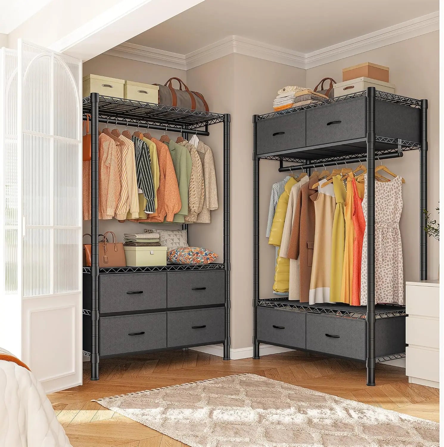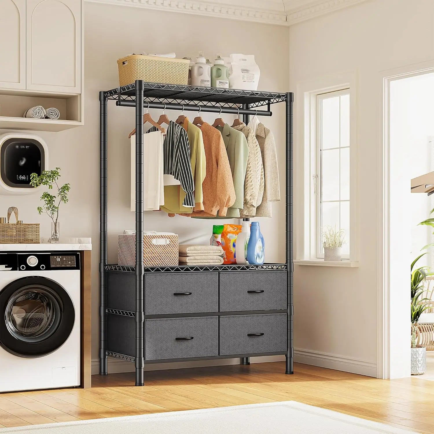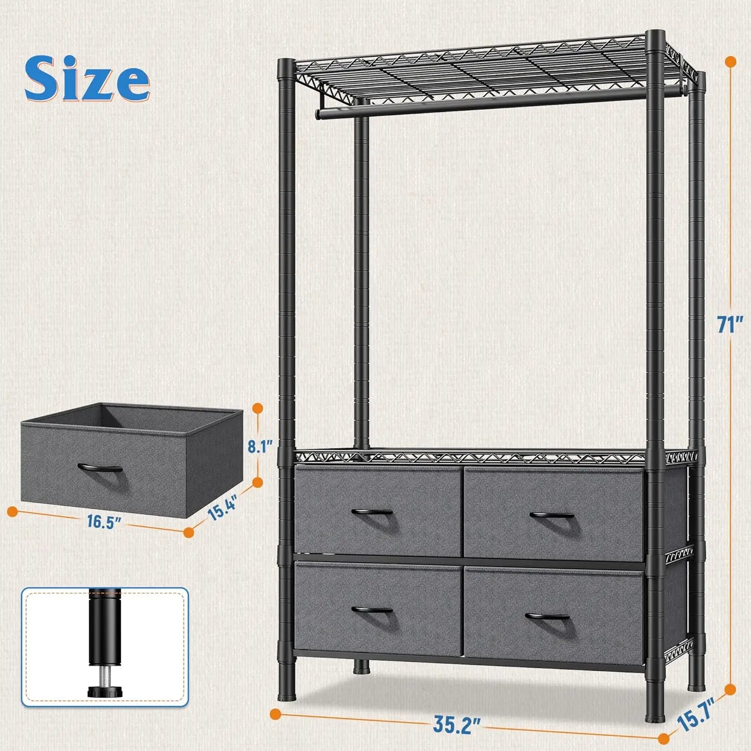 Clothing Rack Heavy Duty Clothes Rack for Hanging Clothes Adjustable with 4 Drawers Freestanding Garment Rack for Extra Space Bl