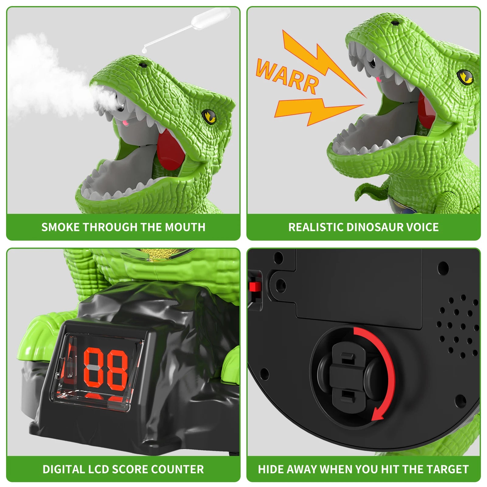 Dinosaur Shooting Toys Movable Target Shooting Game Dinosaur Toy With Score Record 2 Air Pump Blaster For Kid 3-6 Years Old Gift