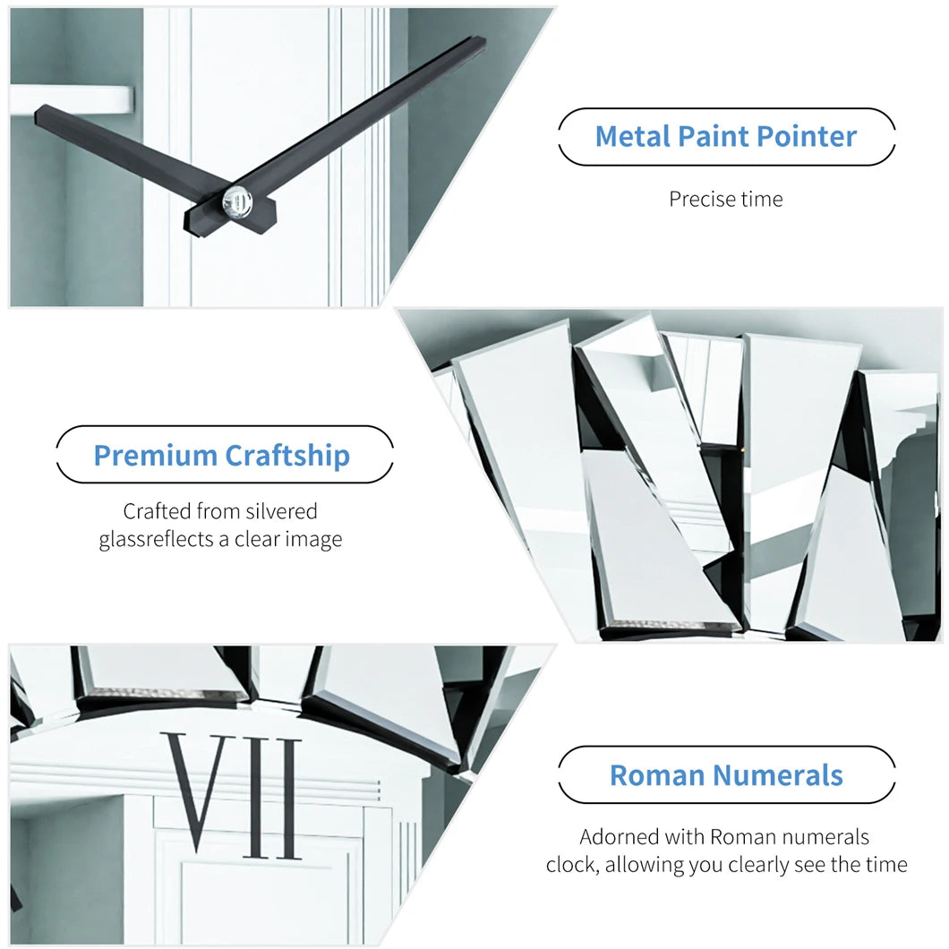 Creative rising sun stereoscopic mirror clock perfectly decorates your living room, bedroom, corridor, restaurant, office, hotel, and is a gift for a housewarming party or special day. The irregular mirror veneer process increases the layering and three-dimensional visual sense of the wall.