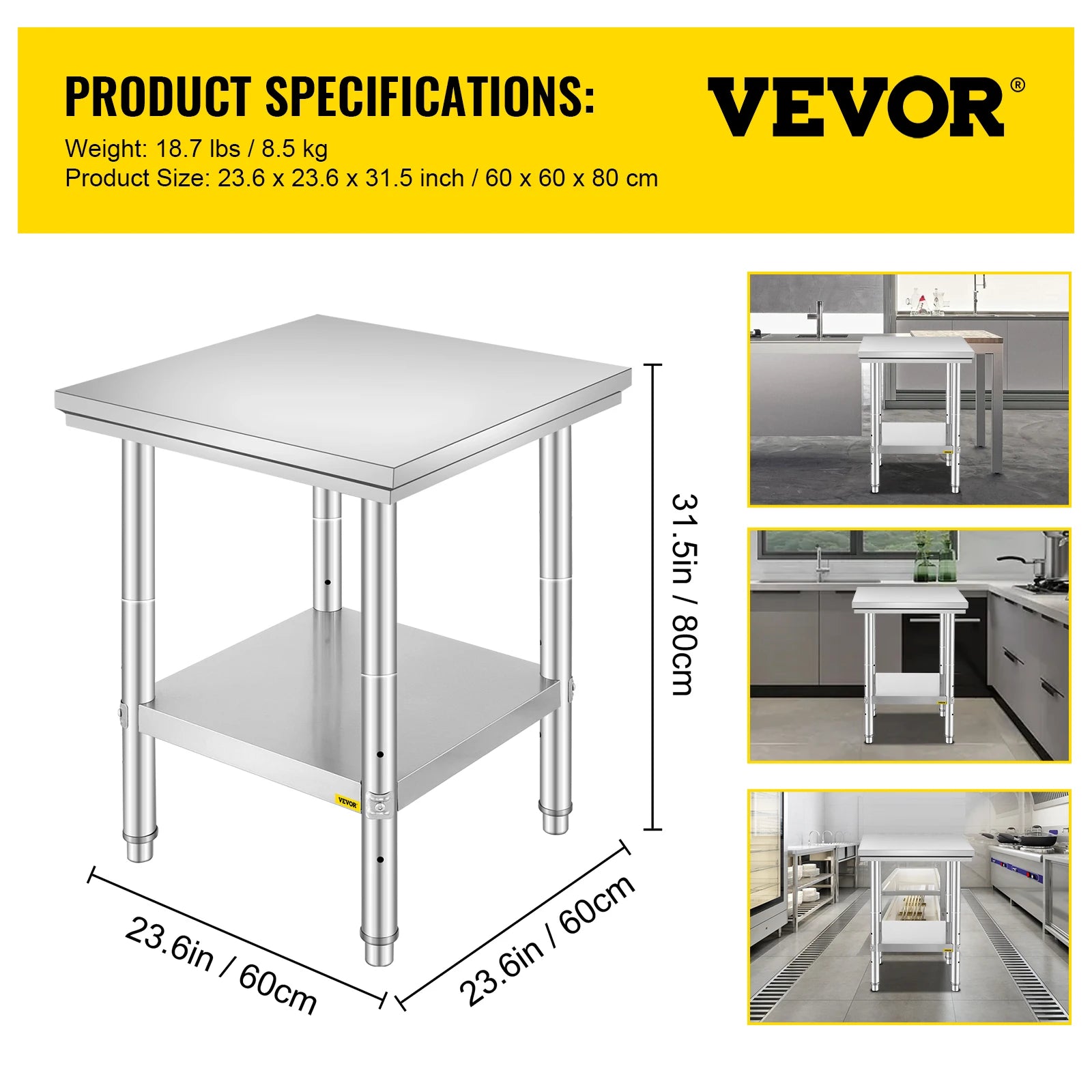 - Durable, rust-resistant construction: 0.8mm SUS201 stainless steel tabletop, shelves, and legs deliver lasting strength and a hygienic surface you can wipe clean.